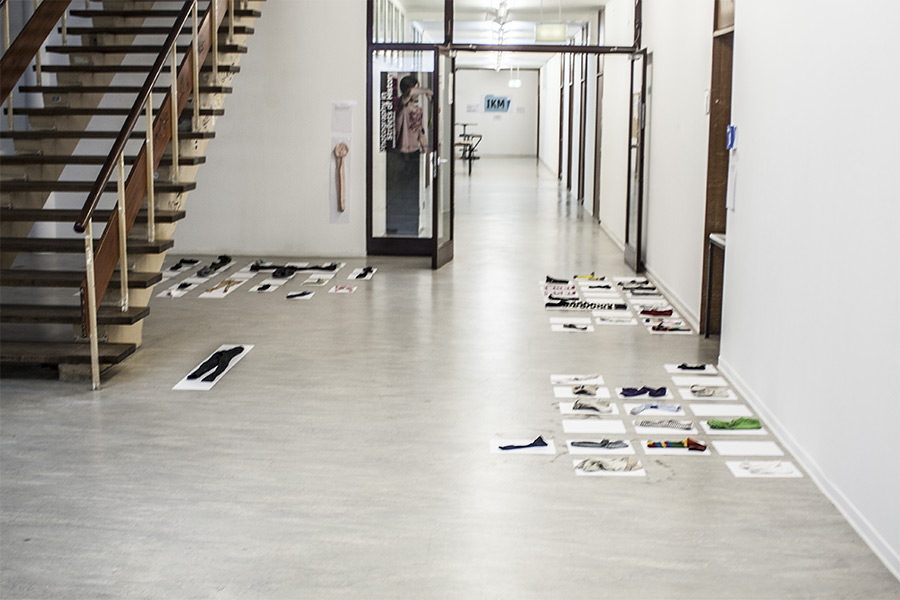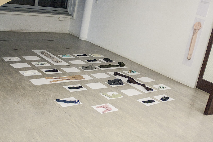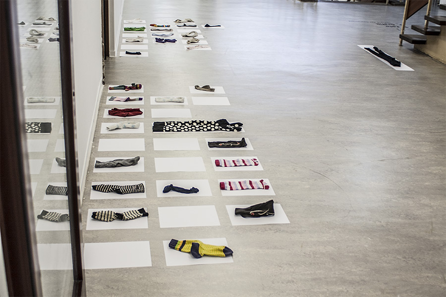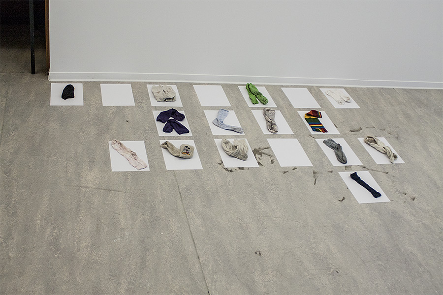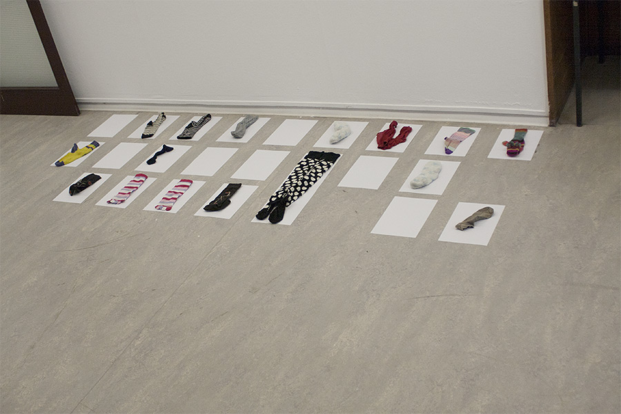 Das α und ω der Mode im Fokus des künstlerischen Blicks: Zwischen Hauptdarsteller und Accessoire vermag die gemeine Socke, lat. impile vulgaris, in ihrer vielfältigen Farb- und Formensprache mehr zu enthüllen, als ihre Träger erahnen. Zwischen schwarzen, grauen und frotteeweißen Standardexemplaren tummeln sich aufwändig gestaltete Exoten, die einerseits die täglich „shiftende“ Identität des Trägers offenlegen und andererseits die Auswüchse der Modeindustrie im untersten Preissegment erkennbar werden lassen: Design als Eintagsfliege, als heimliches Statement individueller Fantasien oder als gesamtgesellschaftliches Postulat einer Welt voller Schauspieler, die ihre schönsten Kostüme zwischen Schuh und Hose tragen.