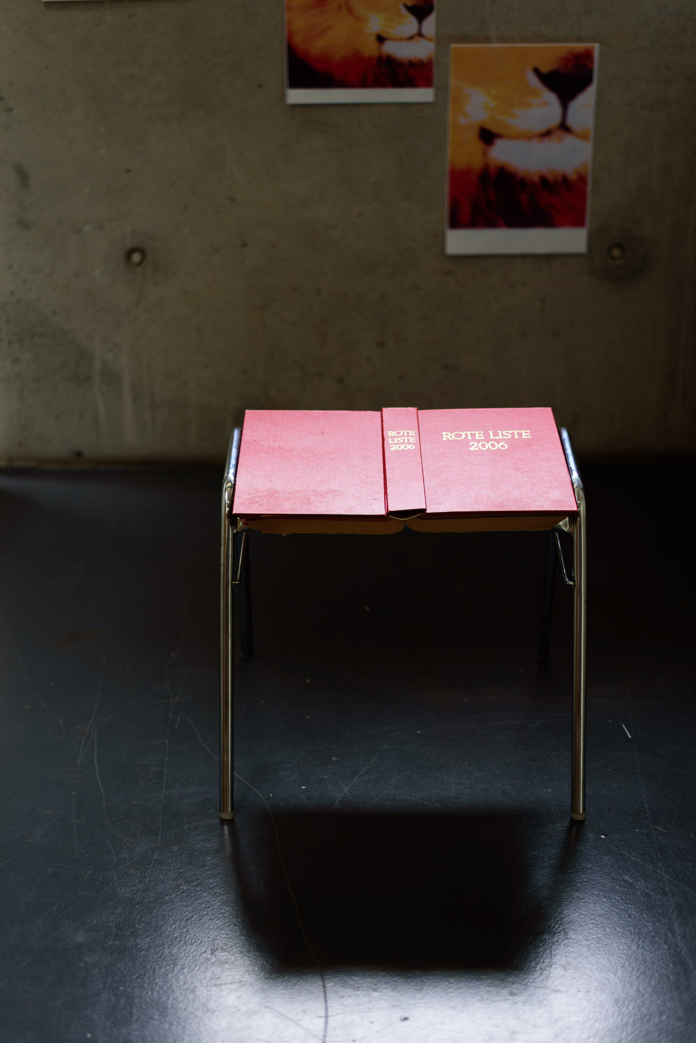 Trenato stellt ins Zentrum ihrer Rauminstallation ein gebetshockerähnliches Objekt, das aus dem Buch „Rote Liste 2006“ gefertigt wurde. Die Doppeldeutigkeit des Buchtitels – Liste der bedrohten Tierarten, aber auch Gesamtverzeichnis der in Deutschland zugelassenen Arzneimittel – bezeichnet in besonderer Weise das Dilemma der Zurschaustellung von Tieren in Gefangenschaft. Einerseits wird vorgeblich ein Beitrag zum Artenschutz durch die Vermehrung gefährdeter Spezies geleistet, andererseits werden die Individuen durch die unnatürliche Haltungsform in Habitaten mit Displayfunktion psychisch angegriffen.